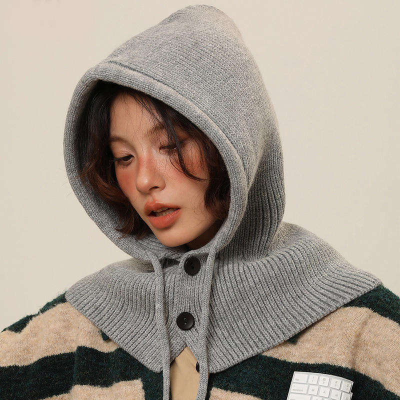 Custom Logo Manufacturer Covered Neck Drawstring Hats Winter Knitted Balaclava