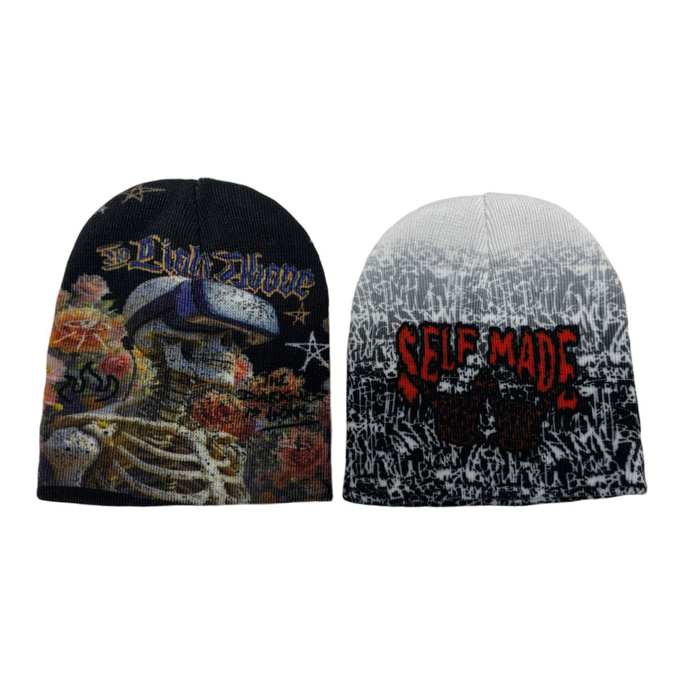 Custom Streetwear Running Winter Beanie Hat Cap All Over Print Graphic Sublimation Printed No Cuff Beanies with Custom Logo
