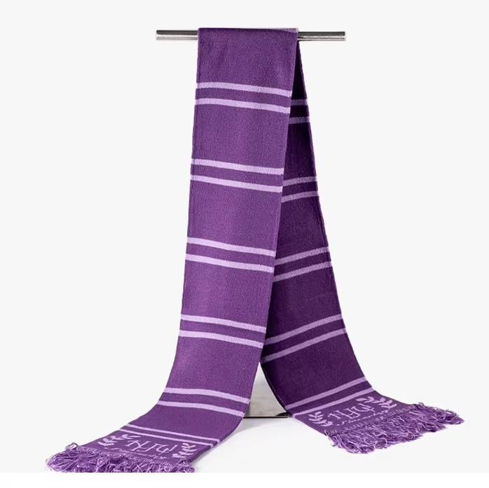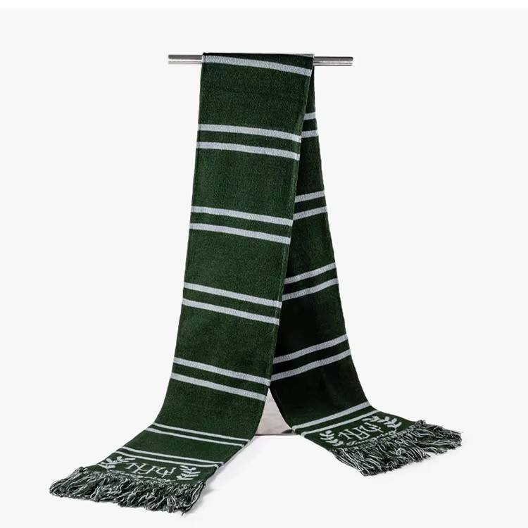 Customizable Knit Embroidered Scarf with Leather Logo Tags at Both Ends Magical Jacquard Striped Fringe Scarf