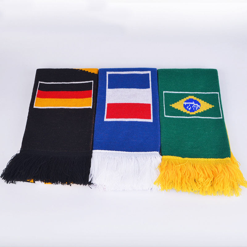 Factory Customized Logo Free Design Slogan Knitting Jacquard Delicate Tassel Basketball Football Fan Team Scarf Fan Club Scarf
