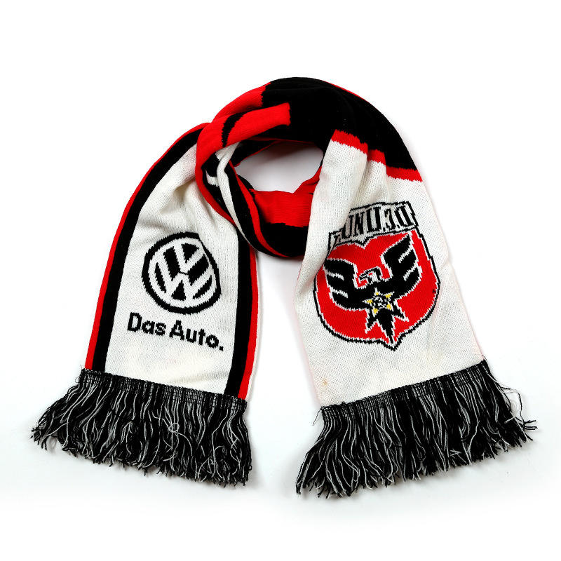 Free Sample Factory Custom Football Fan Scarf Fashion Acrylic Knitted Scarves Jacquard Logo Scarf