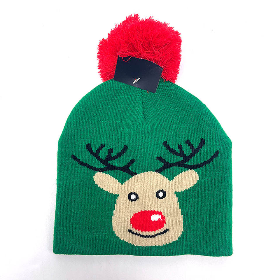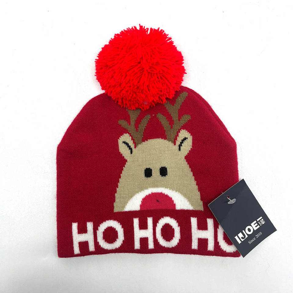Wholesale Factory Price Jacquard Beanies Hat Manufacturer Custom Logo Unisex Christmas Knit Pom Pom Winter Hat Knitted Cap