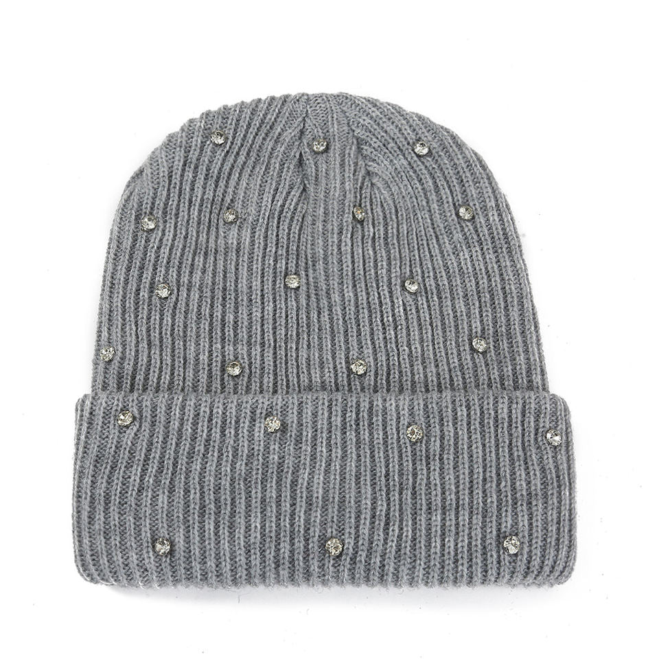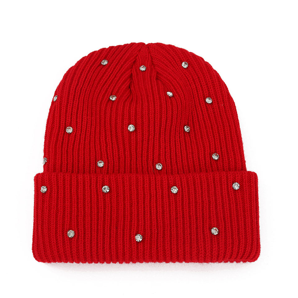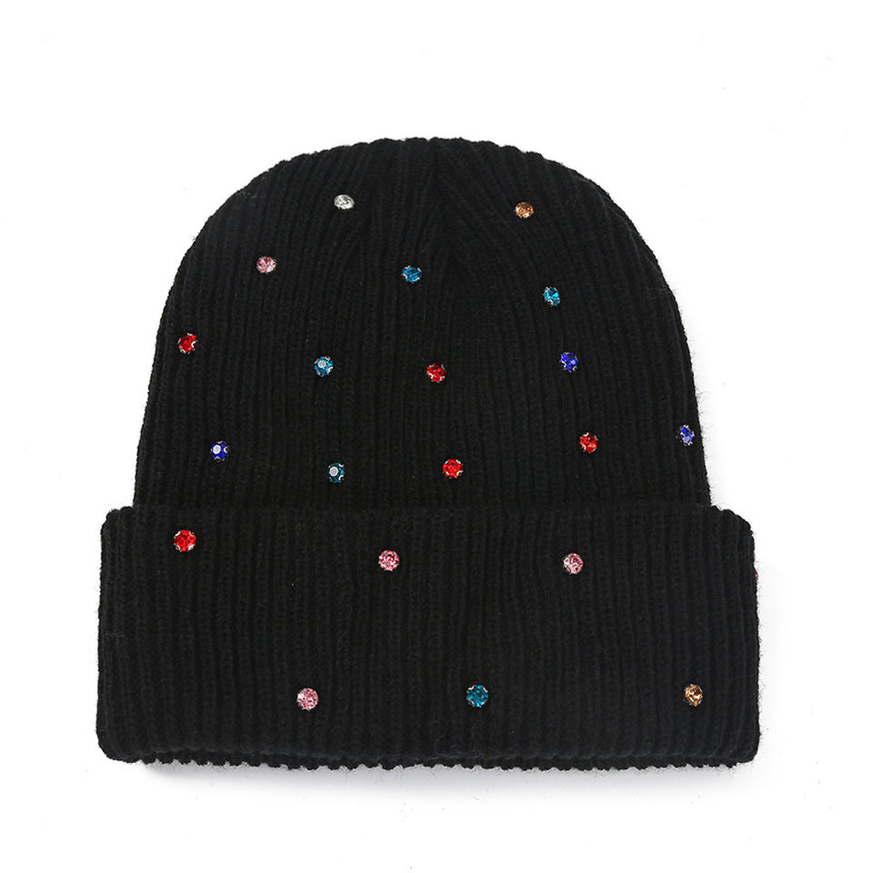 Wholesale Luxury Fashion Streetwear Crystal Pearls Color Rhinestone Winter Warm Knitted Hat Beanie Cap with Custom Logo