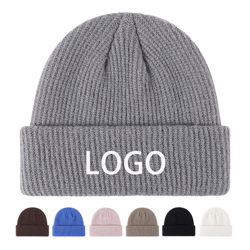 Wholesale Unisex Plain Polyester Knit Beanie Hats Custom Logo Printing Sports Winter Knitted Cuffed Beanie Cap for Men Women